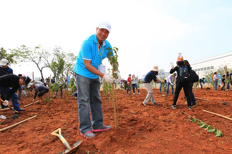 友達董事長暨執行長彭双浪與員工一同響應植樹活動